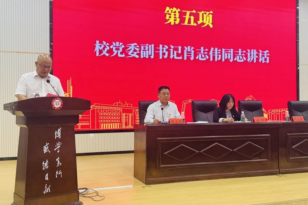 肖志伟代表学校党委,对学院领导班子、全体职工的辛勤努力和取得的成绩表示充分肯定,并对新一届班子和学院未来工作提出了三点希望和要求:一是要强化政治引领功能,坚持正确办学方向;二是要实立德树人任务,着力培养时代新人;三是要加强党风廉政建设,推进学院全面发展。肖志伟希望学院以此次换届为新起点,科学做好学院“十五五”建设规划,找准学科建设和人才培养的着力点和突破口,打造“优势,交叉,新工科”的专业布局,确保学院事业高质量发展行稳致远,为推动落实湖南“三高四新”发展战略做出新的更大贡献!