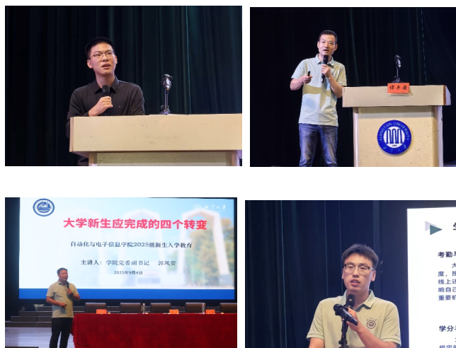 学习上,22级自动化2班崔德朕同学结合自身经历,分享成长经验并给出学习与竞赛建议;副院长谭平安则解读课程设置、培养方案等教学安排,为新生明确学习方向。