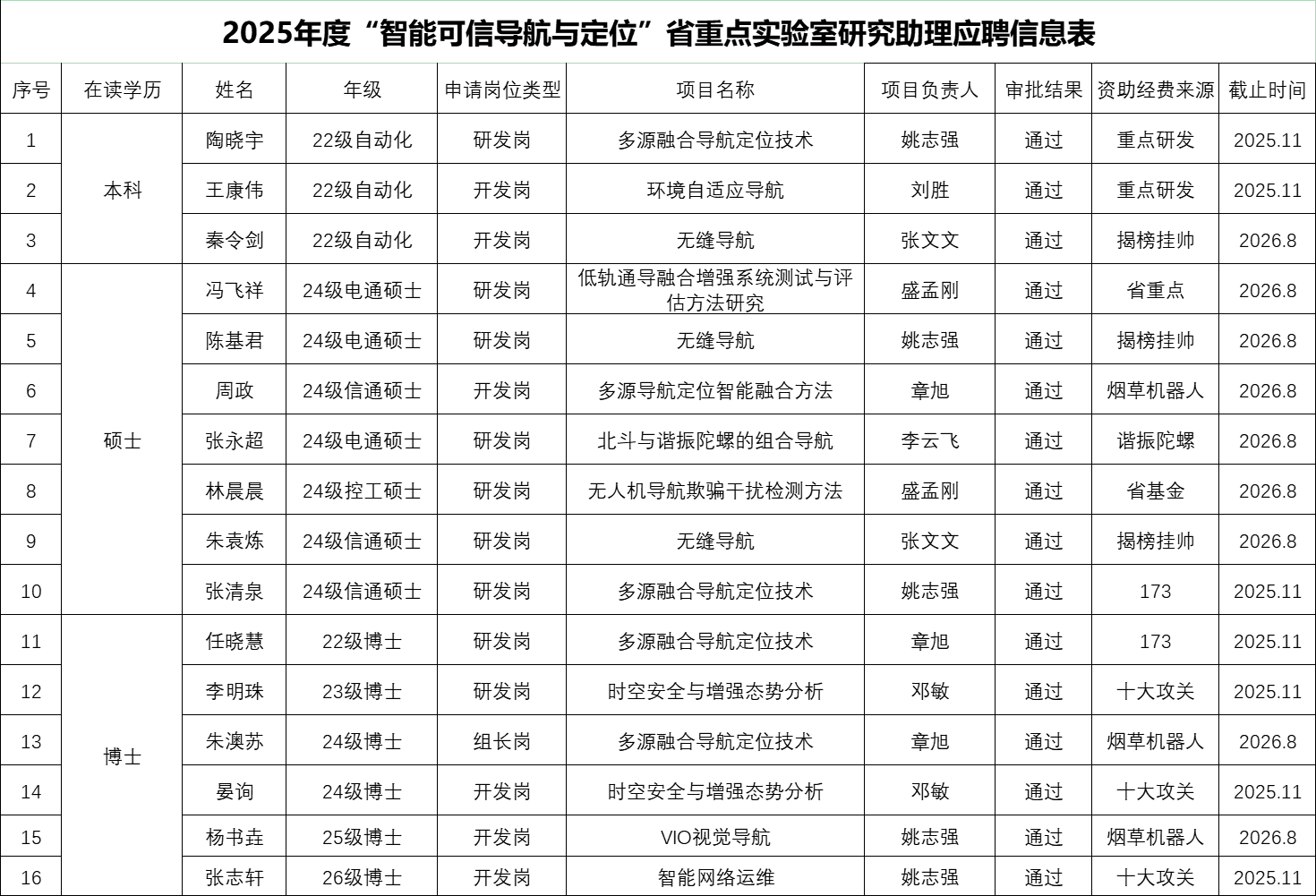 本次研究助理受聘仪式的成功举行,是实验室深化科研人才培养模式的重要举措。未来,实验室将以此次仪式为契机,进一步完善研究助理培养机制,强化师生协同科研氛围,助力学生在实践中提升科研能力与创新思维,为智能可信导航与定位领域培养更多高素质科研后备人才,为湖南省乃至全国相关产业发展贡献科研力量。