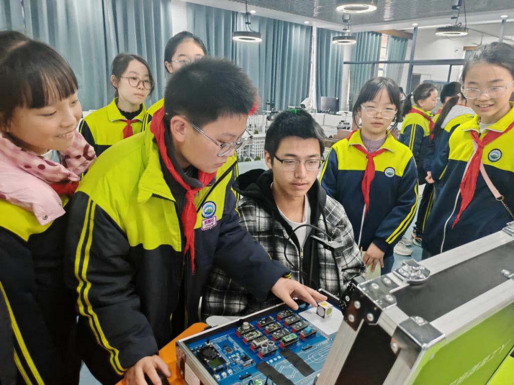 (通讯员 李力)12月16日,金庭学校六年级师生赴我校人工智能科普基地,开展了以“科技梦想与红色传承”为主题的研学实践活动。学生们通过系列参观、实操体验与沉浸学习,近距离感知人工智能技术前沿,并于红色教育环节接受了深刻的思想启迪。