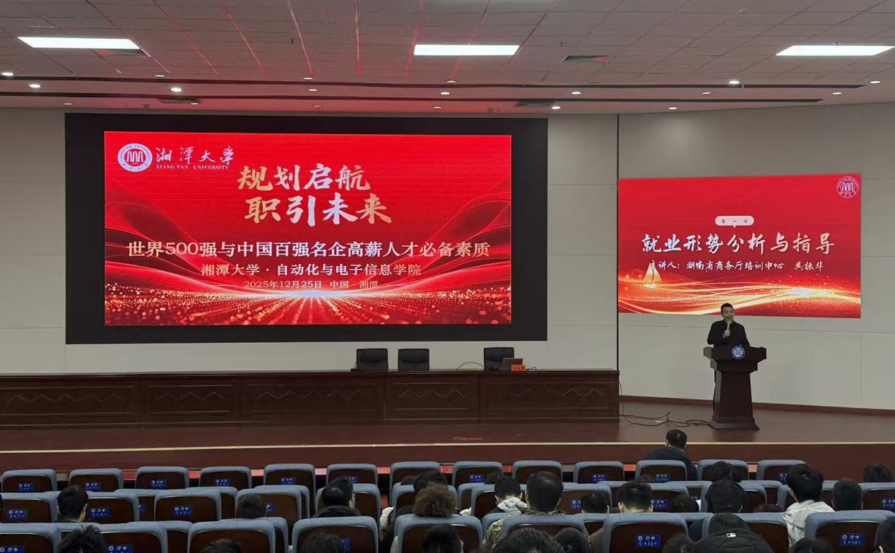 吴振华深耕职业规划领域,兼任湖南大学、湖南师范大学特聘指导老师及多家世界500强企业、上市公司顾问。本次就业辅导中,他以“世界500强与中国百强企业高薪人才必备素质”为核心,结合行业实践经验,从职业认知构建、核心能力锤炼、求职路径优化三个维度展开系统分享。通过剖析真实案例明晰就业市场态势,深入解析企业招聘核心考察维度,为同学们提供了从校园到职场的明确成长指引。